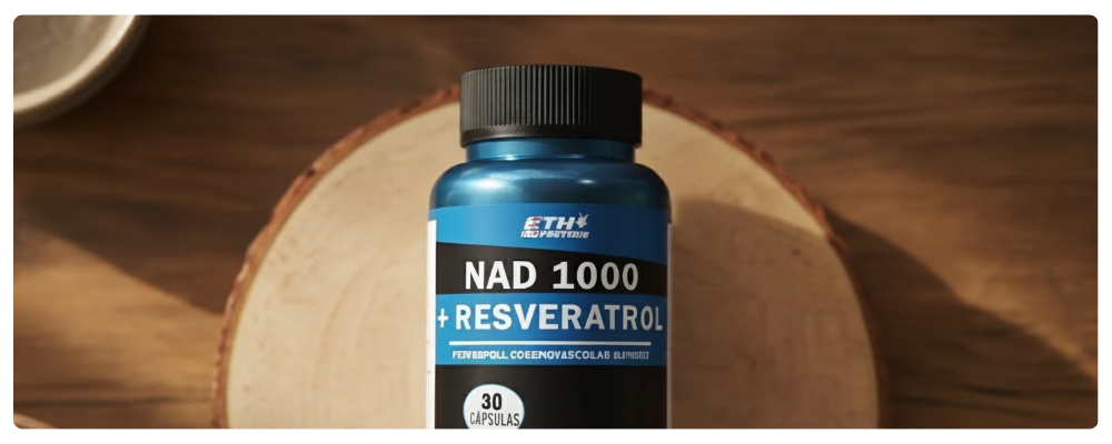 ETH NAD 1000 + Resveratrol combina dos ingredientes esenciales para la vitalidad: el NAD+ y el resveratrol. El NAD+ es una coenzima presente en todas las células, imprescindible para la producción de energía y la reparación del ADN; sus niveles disminuyen con la edad. El resveratrol es un polifenol antioxidante que neutraliza los radicales libres y se asocia a la salud cardiovascular. Esta fórmula avanzada está diseñada para rejuvenecer tus células, mejorar la energía y proteger tu organismo.